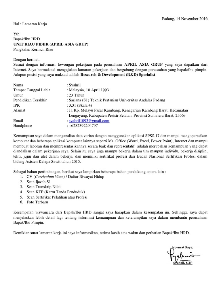 Contoh Surat Lamaran Kerja Bahasa Melayu